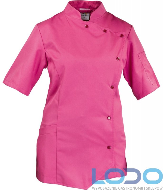 Damska bluza kucharska w kolorze różowym jest idealna dla każdej szefowej kuchni. Tkanina Kb Textil, z której bluza jest uszyta, gwarantuję zachowanie koloru po wielokrotnym praniu, odporność na większe zabrudzenia i wytrzymałość na długie lata. Wygodę i bezpieczeństwo zapewnia technologia wykorzystana podczas produkcji. Dodatkowo bluzę wyróżniają cięcia modelujące z przodu doskonale podkreślające sylwetkę i praktyczna kieszeń na rękawie z przeszyciem.