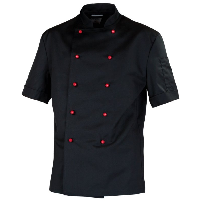 Bluza kucharska męska z kieszenią czarna krótki rękaw (czerwone guziki) Lodo
