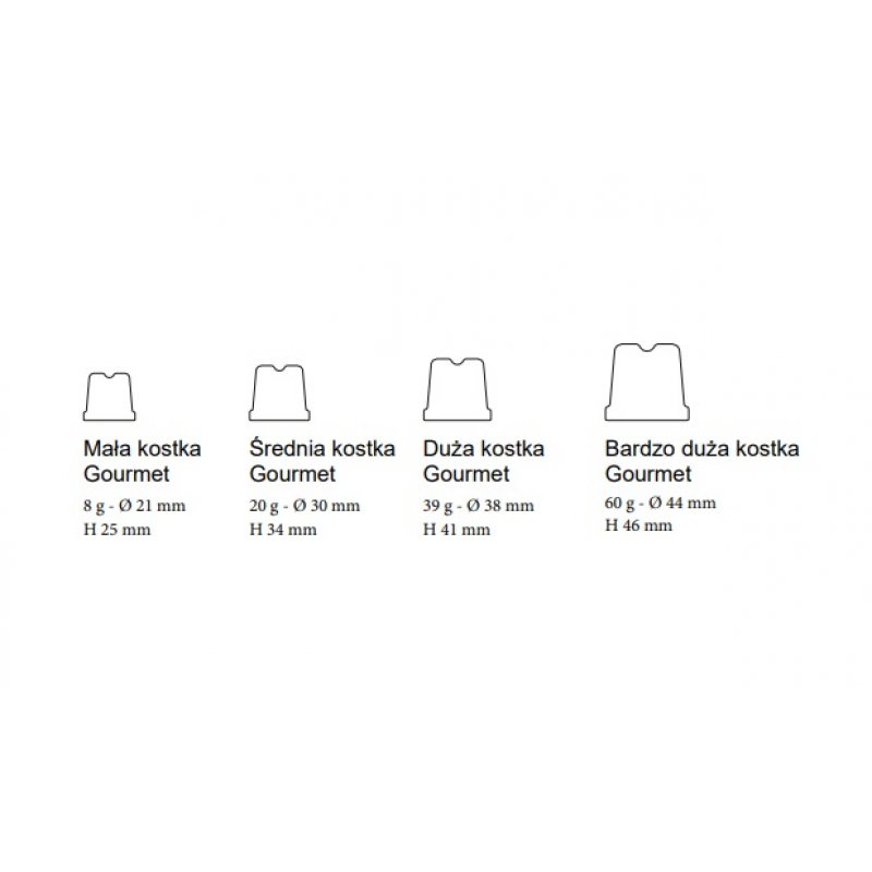 - Produkuje pojedyncze krystalicznie czyste kostki Gourmet