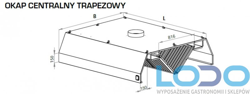 OKAP CENTRALNY TRAPEZOWY Z ŁAPACZAMI TŁUSZCZU 3800x2000x450mm