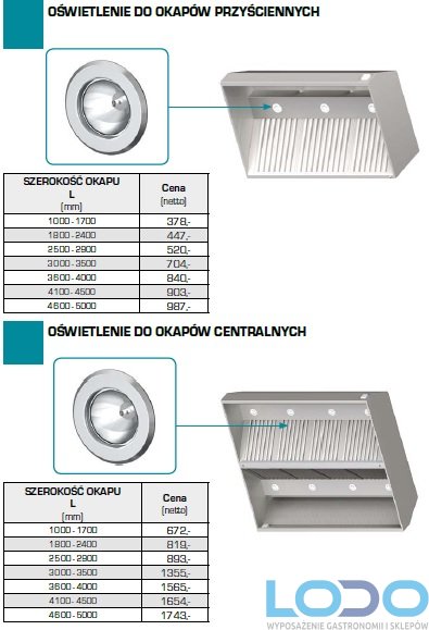 - przy L > 2900 okap dzielony na dwa segmenty