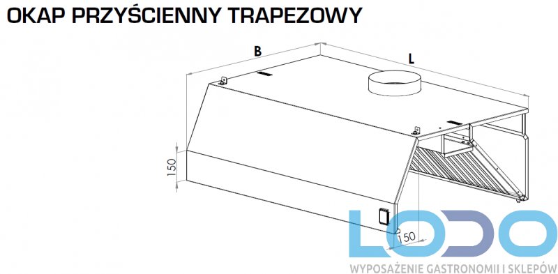 OKAP PRZYŚCIENNY TRAPEZOWY Z ŁAPACZAMI TŁUSZCZU 1600x1000x450