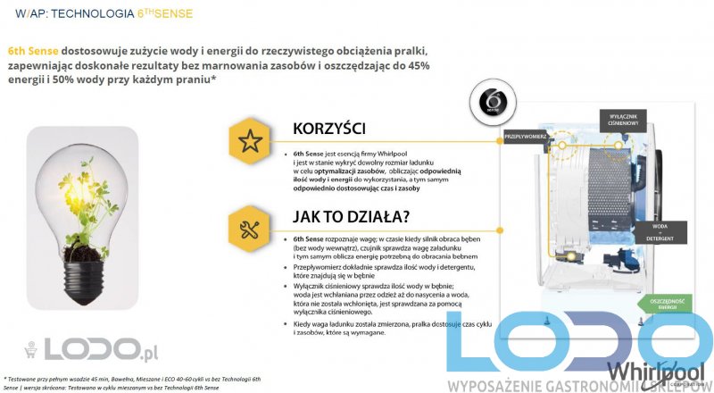 Ta zaawansowana funkcja dostosowuje zużycie energii do rzeczywistego wsadu, zapewniając wyjątkową i skuteczną skuteczność czyszczenia przy dużych oszczędnościach: do 45% energii* przy każdym praniu.