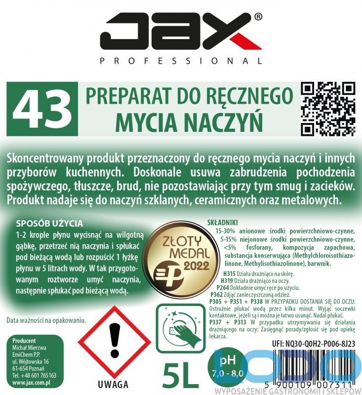 PREPARAT DO RĘCZNEGO MYCIA NACZYŃ JAX PROFESSIONAL 5L