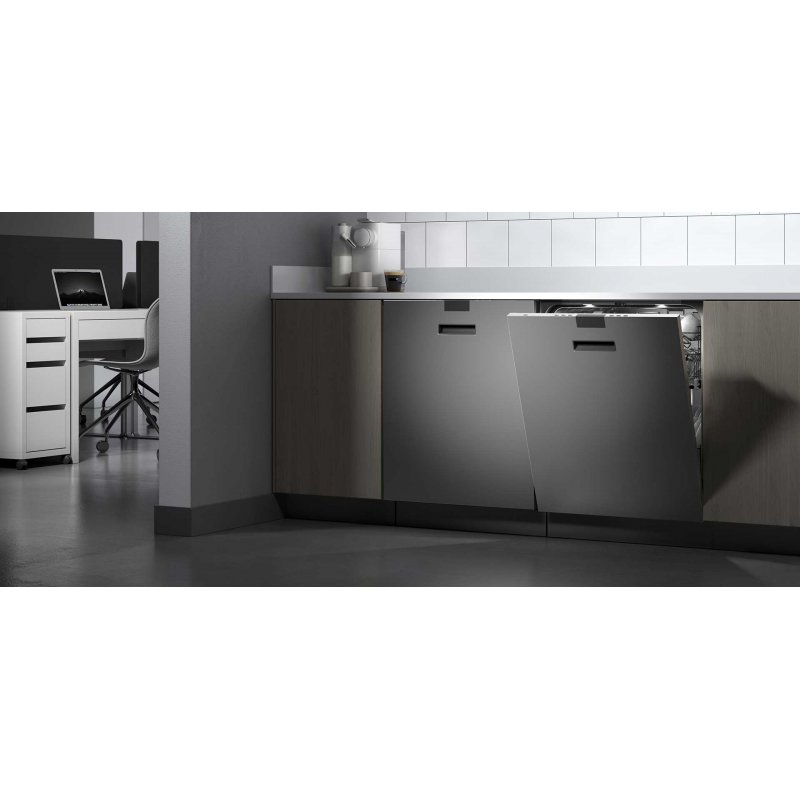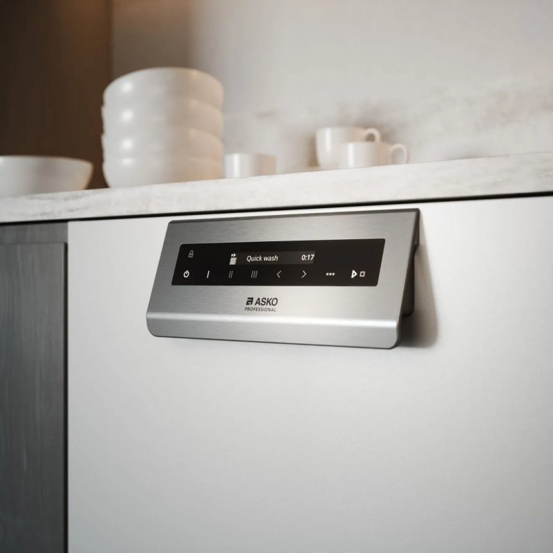 Intuicyjna obsługa zmywarki ASKO DW60.C zapewnia łatwy dostęp do jej innowacyjnych funkcji. Centralnie umieszczony i zintegrowany z uchwytem kolorowy wyświetlacz z przyciskami dotykowymi zapewnia wygodną obsługę dzięki sterowaniu od lewej do prawej strony. Podświetlane wskaźniki i symbole o wysokim kontraście poprawiają widoczność, a trzy szybko działające przyciski zapewniają natychmiastowy wybór programu. Wyświetlacz pokazuje czas zmywania, temperaturę, wybrany program i stan połączenia z siecią Wi-Fi, dzięki czemu obsługa jest prosta i wydajna.