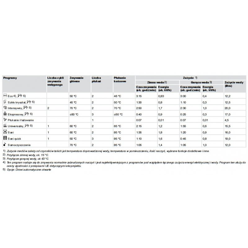 • Zużycie wody na cykl dla programu Eco: 9,9 L
