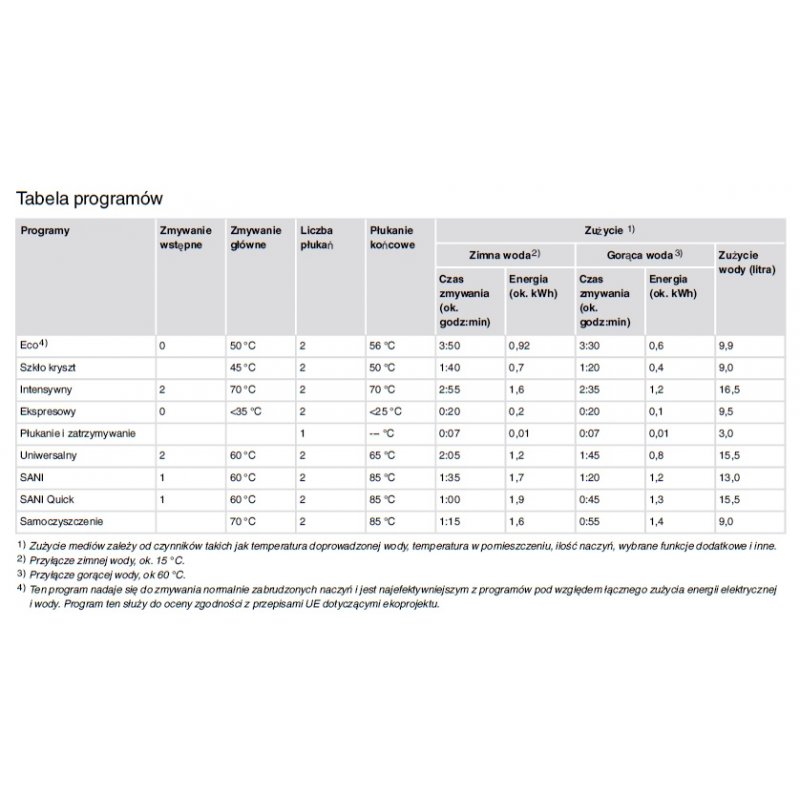 • Zużycie wody na cykl dla programu Eco: 9,9 L
