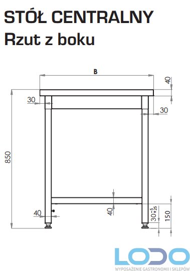 STÓŁ CENTRALNY BEZ PÓŁKI SPAWANY STALGAST 2800/700/850mm