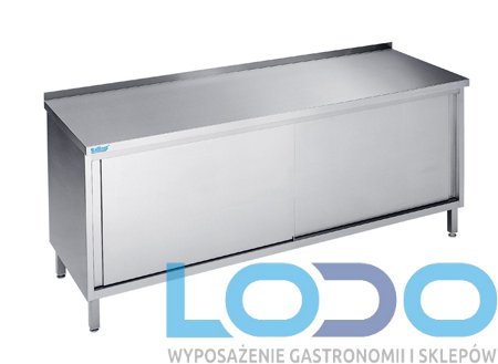 Stół do pracy z drzwiami przesuwnymi z półką dolną i przestawną oraz zagięciem z tyłu w górę (typ 5cm), powierzchnia zamknięta z 4 stron.