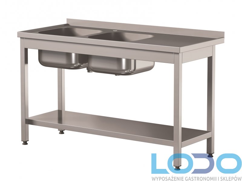 STÓŁ PRZYŚCIENNY Z 2 ZLEWAMI I PÓŁKĄ SPAWANY wym.1600/600/850mm