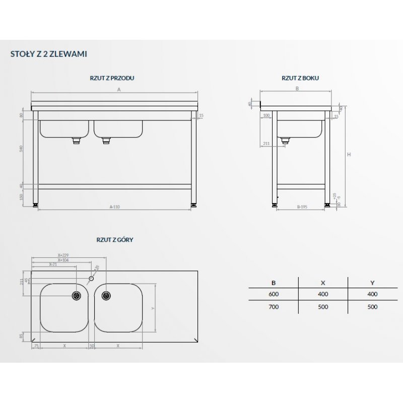 - Stoły ze zlewem dwukomorowym bez półki20