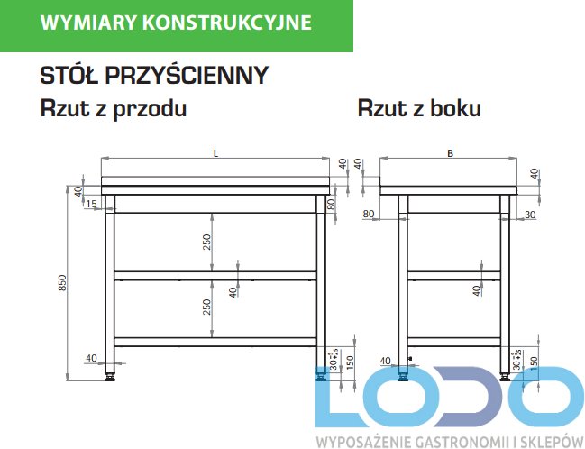 - Stoły przyścienne zabudowane z dwoma półkami24