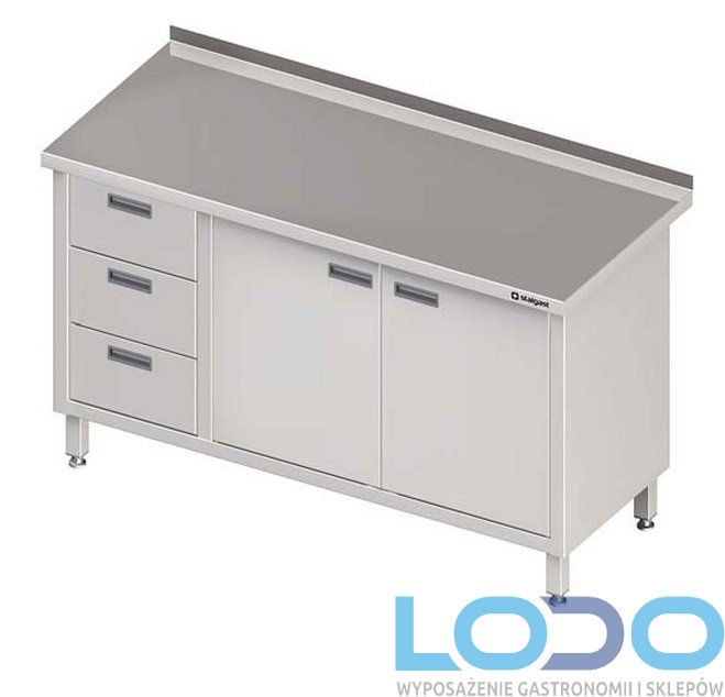 STÓŁ PRZYŚCIENNY Z BLOKIEM TRZECH SZUFLAD I DRZWIAMI SKRZYDŁOWYMI STALGAST 1200/700/850mm