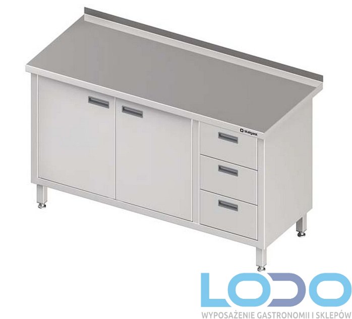 STÓŁ PRZYŚCIENNY Z BLOKIEM TRZECH SZUFLAD I DRZWIAMI SKRZYDŁOWYMI STALGAST 1600/600/850mm