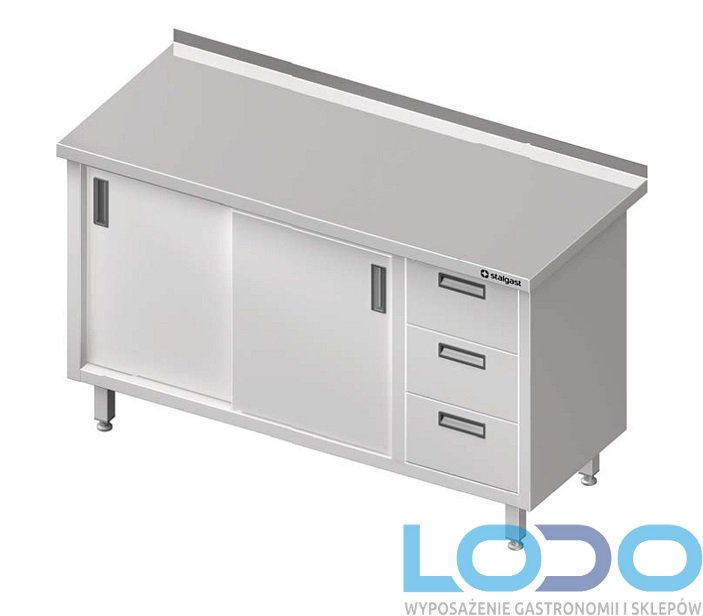 STÓŁ PRZYŚCIENNY Z BLOKIEM TRZECH SZUFLAD I DRZWIAMI SUWANYMI STALGAST 1300/600/850mm