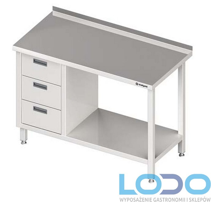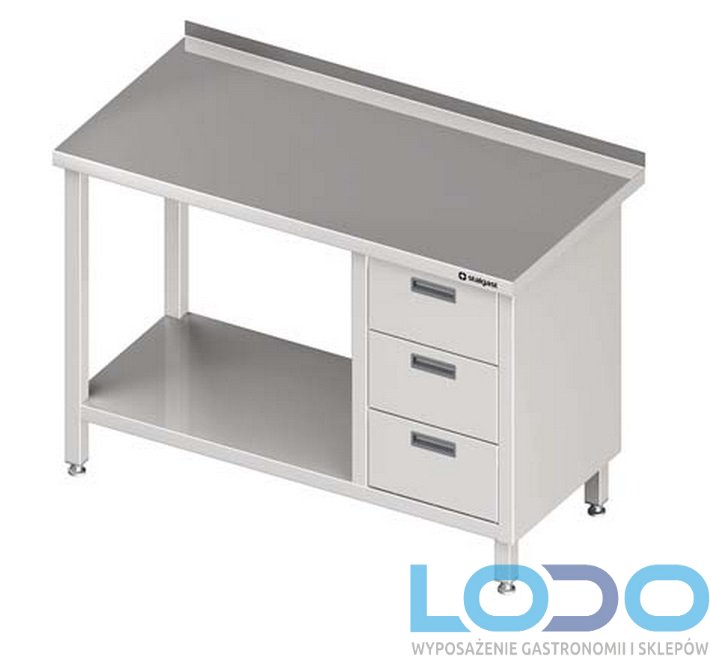 STÓŁ PRZYŚCIENNY Z BLOKIEM TRZECH SZUFLAD I PÓŁKĄ STALGAST 1000/600/850mm