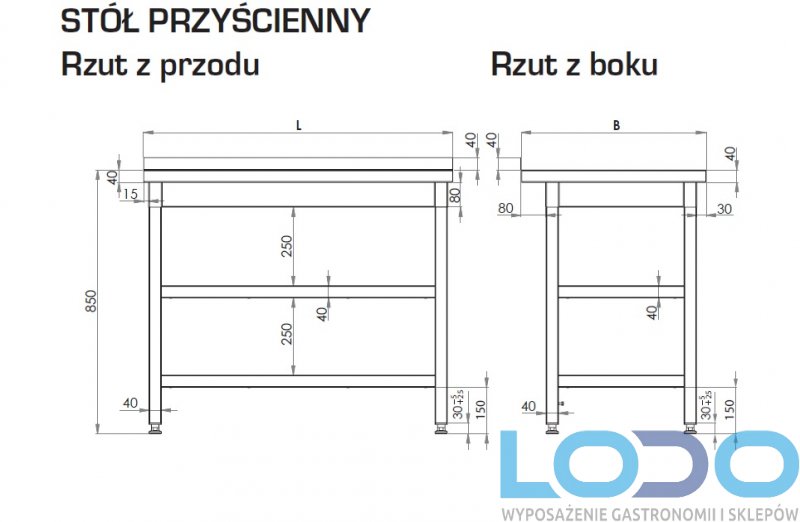 - Stoły przyścienne zabudowane z dwoma półkami24
