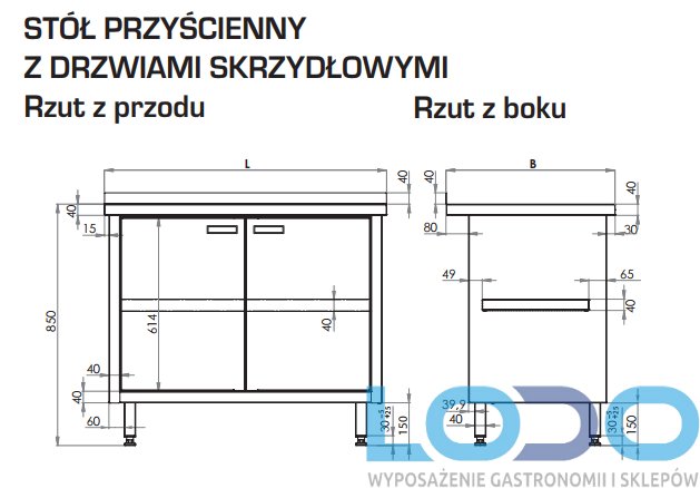 STÓŁ PRZYŚCIENNY Z DRZWIAMI SKRZYDŁOWYMI STALGAST 1400/600/850mm