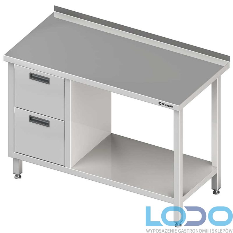 STÓŁ PRZYŚCIENNY Z DWIEMA SZUFLADAMI I PÓŁKĄ STALGAST 1900/600/850mm