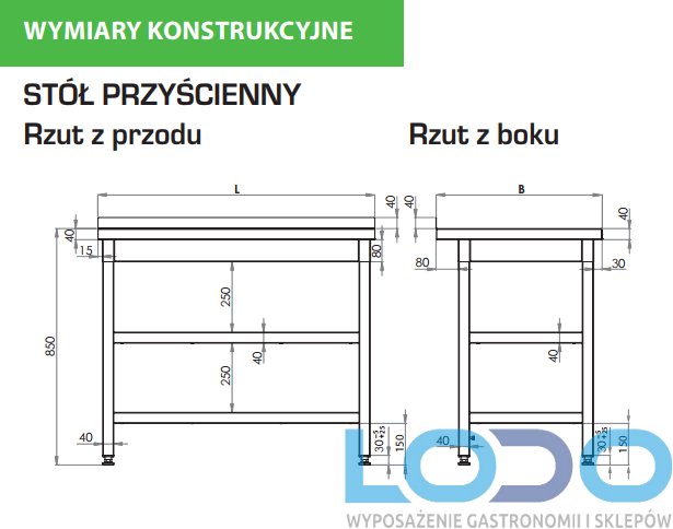 - Stoły przyścienne z dwoma półkami50