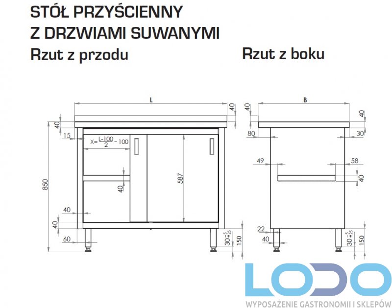 STÓŁ PRZYŚCIENNY Z SZAFKĄ I DRZWIAMI SUWANYMI STALGAST 1500/600/850mm