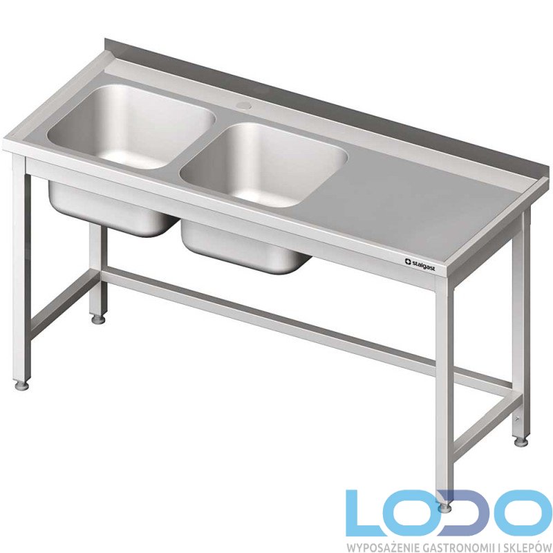 STÓŁ ZE ZLEWEM DWUKOMOROWYM BEZ PÓŁKI SPAWANY STALGAST 1900/600/850mm