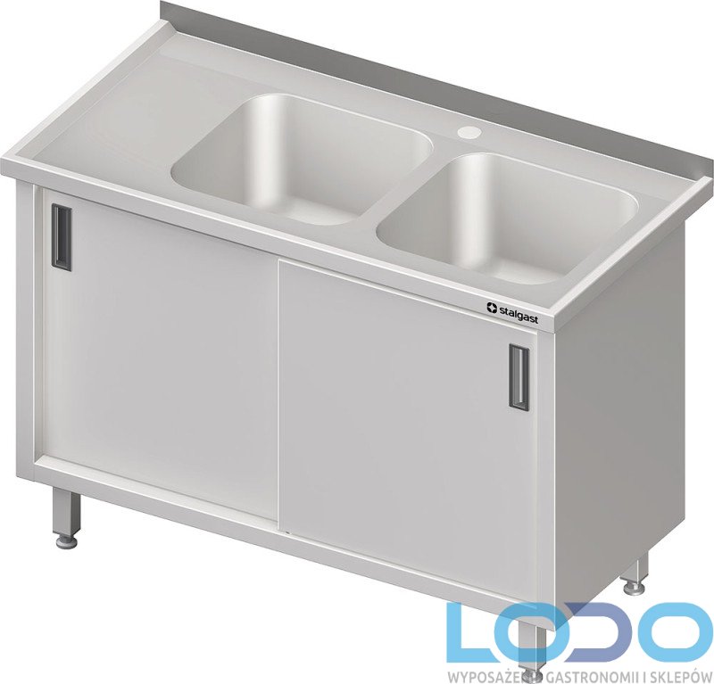 STÓŁ ZE ZLEWEM DWUKOMOROWYM I DRZWIAMI SUWANYMI STALGAST 1500/600/850mm