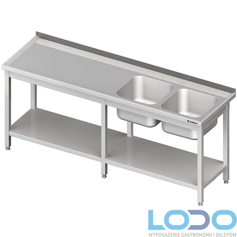 STÓŁ ZE ZLEWEM DWUKOMOROWYM Z PÓŁKĄ SPAWANY STALGAST 2500/600/850mm