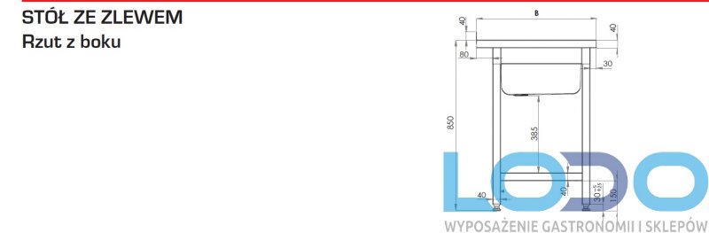 STÓŁ ZE ZLEWEM JEDNOKOMOROWYM BEZ PÓŁKI STALGAST 700/700/850mm