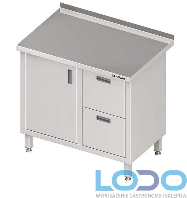 STOŁY PRZYŚCIENNE Z BLOKIEM DWÓCH SZUFLAD I DRZWIAMI SKRZYDŁOWYMI STALGAST 900/600/850mm