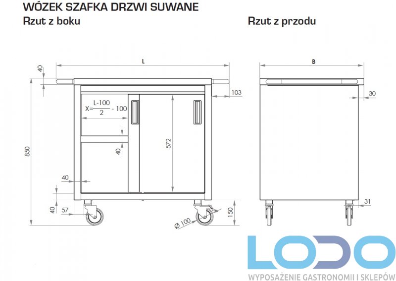 WÓZEK Z SZAFKĄ I DRZWIAMI SUWANYMI STALGAST 1000x600x850mm