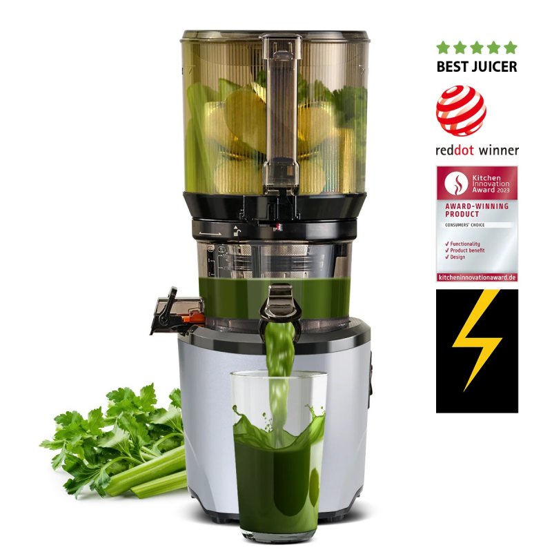 Dzięki największemu dostępnemu pojemnikowi (3 litry) wyciskarka niemal sama przygotuje sok. Wystarczy umieścić składniki w podajniku i włączyć wyciskarkę, by już po kilku minutach serwować sok.