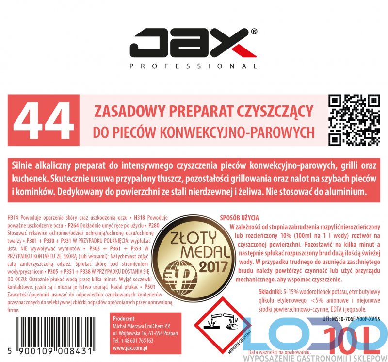 ZASADOWY PREPARAT CZYSZCZĄCY DO PIECÓW KONWEKCYJNO-PAROWYCH, GRILLI I KUCHENEK JAX PROFESSIONAL 10l