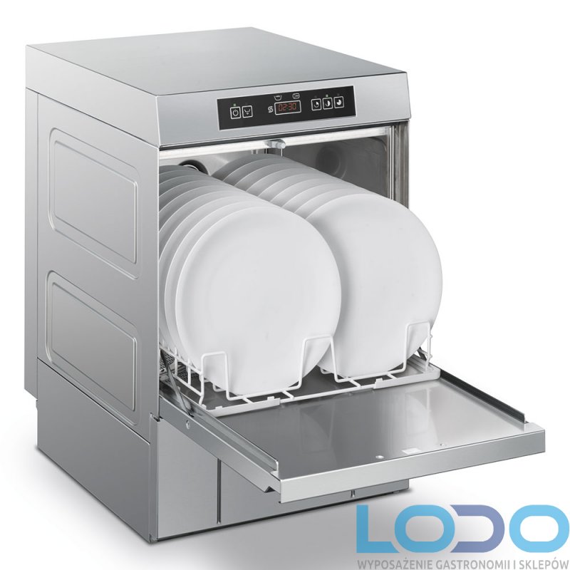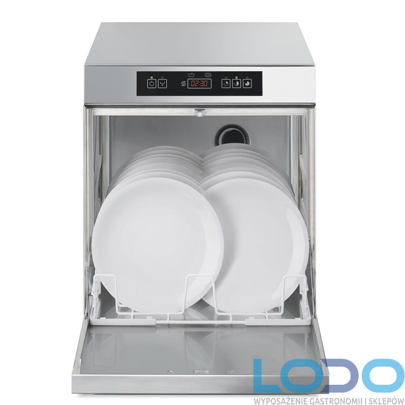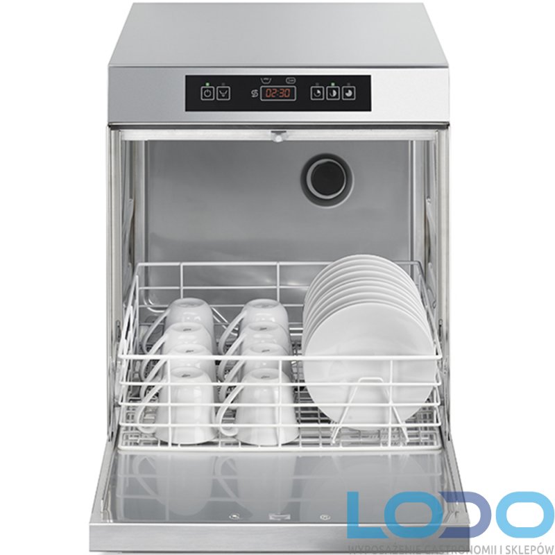 Zmywarka profesjonalna SMEG DMS403DMS z wbudowanym zmiękczaczem, do szkła, pojedyncza ścianka, wysokość wsadu 33cm, kosz 40x40cm